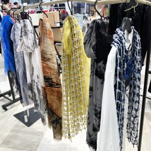 ジャポニズムを感じさせるアーティなテキスタイルで彩られたショップでは